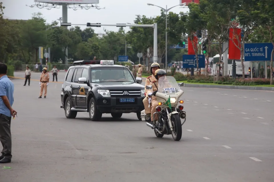 Đoàn xe đưa tổng thống rời khỏi sân bay Tân Sơn Nhất. Ảnh: Nguyễn Tân