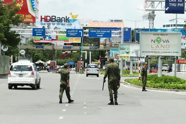 Trước khu vực đường vào sân bay Tân Sơn Nhất. Ảnh: Thanh Danh