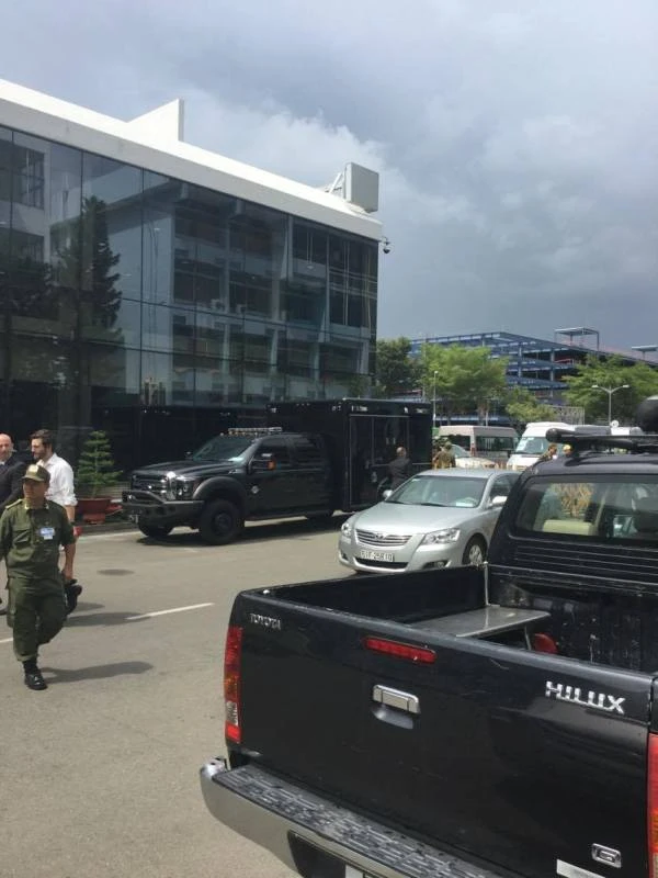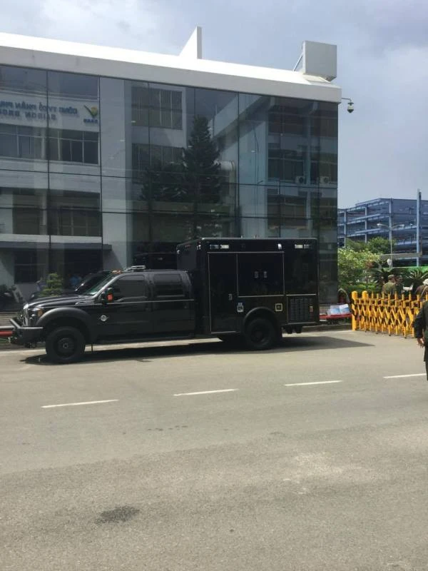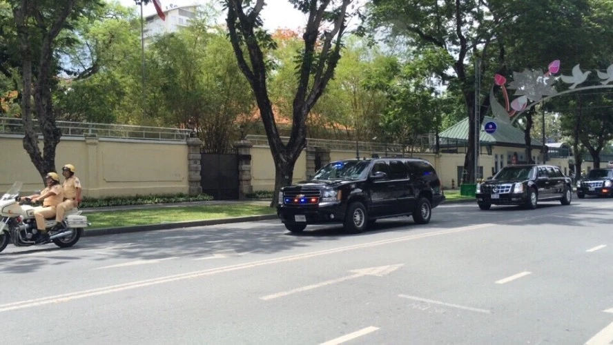 Một trong những chiếc xe chuyên dụng trong đoàn đón tổng thống . Ảnh: Thanh Danh