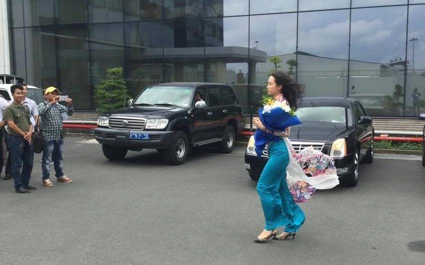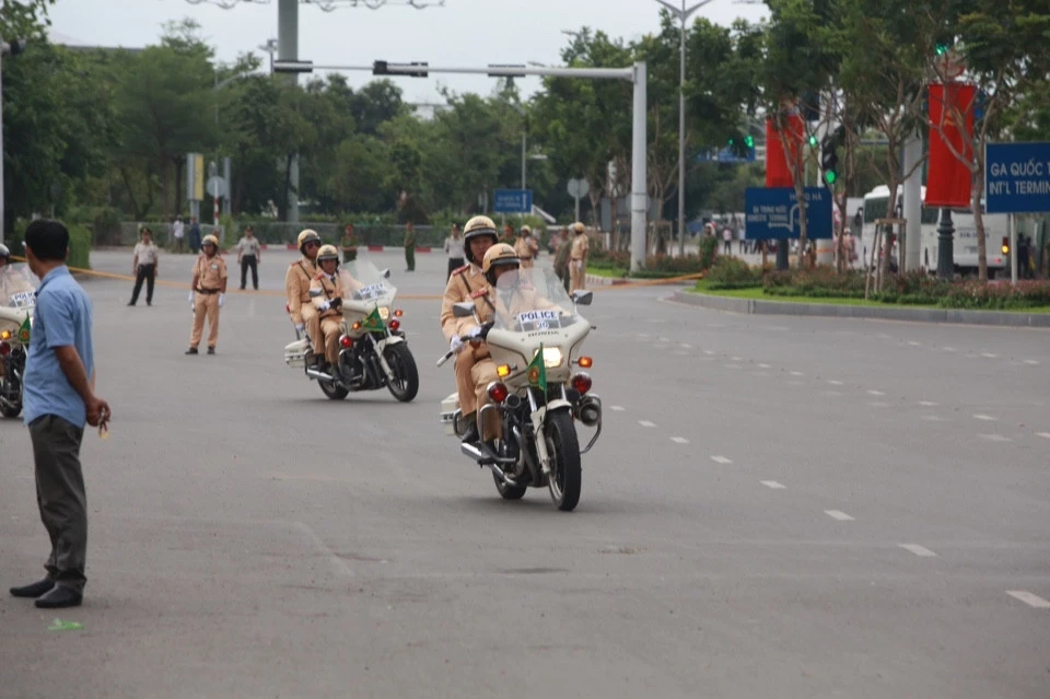 Đoàn xe rời khỏi sân bay Ảnh: Nguyễn Tân