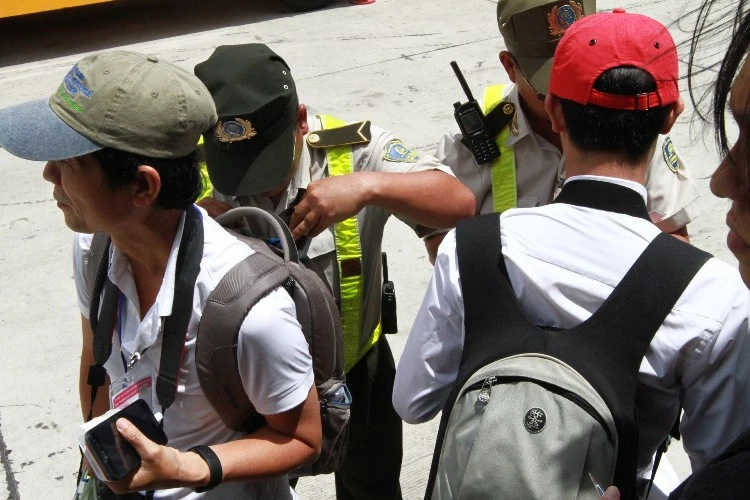 Từ cổng ngoài sân bay vào đến khu vực bên trong các phóng viên phải đi qua 4 vòng kiểm soát an ninh. Ảnh: Thanh Danh
