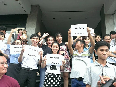 Phóng viên Quỳnh Trang của báo Pháp Luật TP.HCM ghi nhận không khí ở đây rất náo nhiệt, tuy nhiên, người dân có ý thức xếp hàng trật tự, không có hiện tượng xô đẩy, chen lấn. Tất cả đều đang háo hức chờ đón tổng thống Obama đến tòa nhà Dreamplex (tòa nhà Miss Áo Dài, Q.1, TP.HCM).