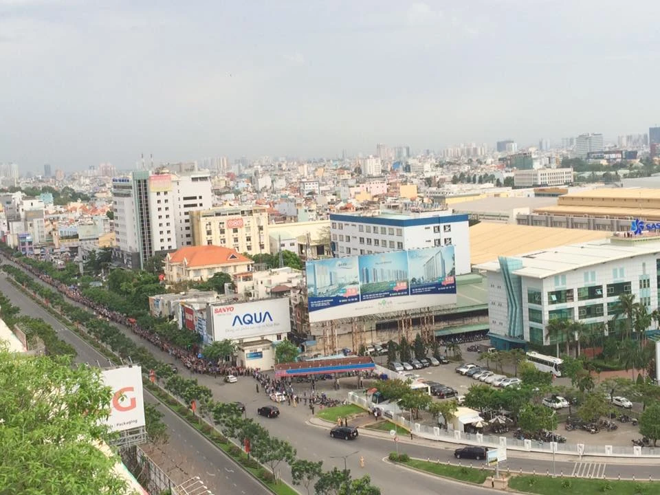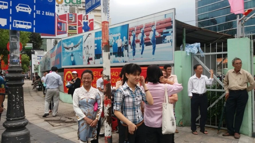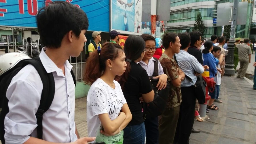 Các bạn trẻ đứng khá trật tự trên đường Nam Kỳ Khởi Nghĩa. Ảnh: Trí Dũng