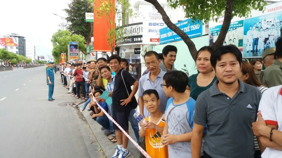 Người dân hai bên đường đứng khá trật tự. Ảnh: Trí Dũng