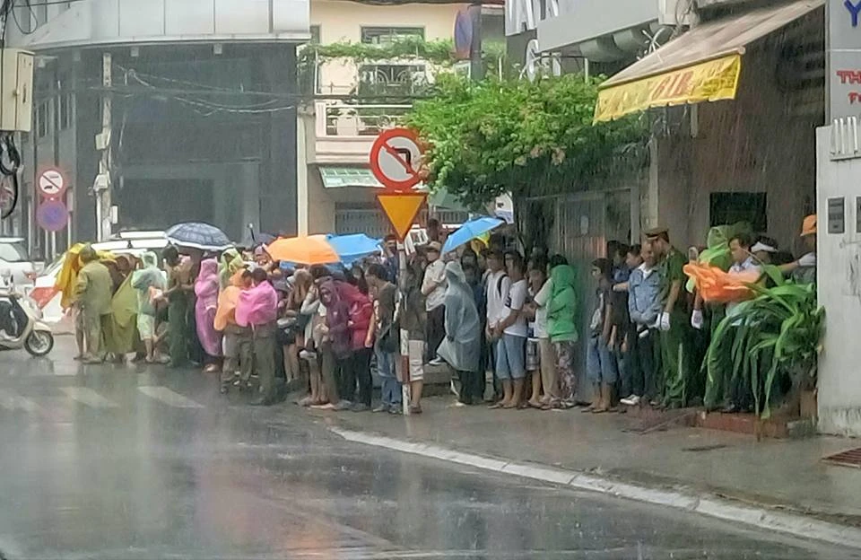 Bất kể cơn mưa bất chợt, nhiều người vẫn "bám trụ" vị trí. Ảnh: Hoàng Giang