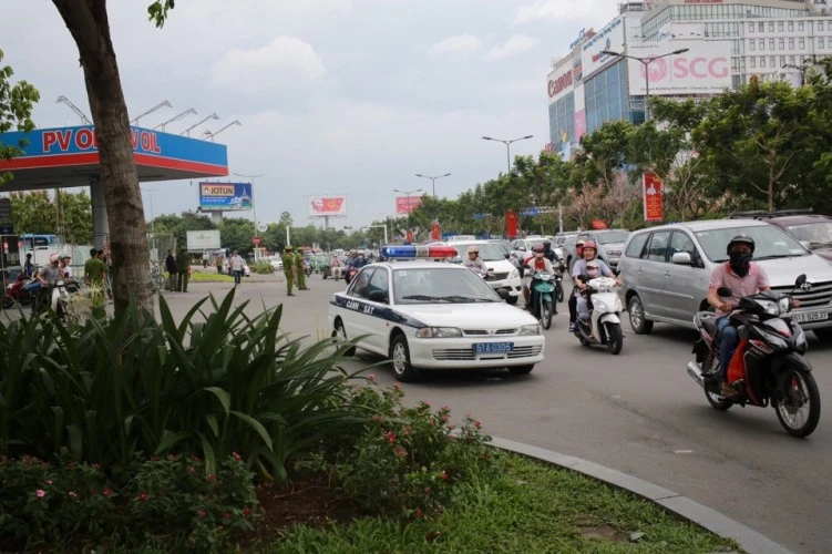 Đoàn xe được CSGT dẫn đường. Ảnh: Hoàng Tuyết