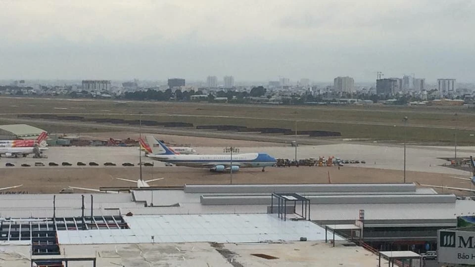 Một chiếc chuyên cơ Mỹ đã đáp xuống đường băng Tân Sơn Nhất. Hiện chưa rõ đây có phải là chuyên cơ chở tổng thống Obama hay không. Nhiều dự đoán cho biết đây là máy bay chở ngoại trường Mỹ John Kerry.