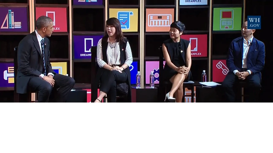 3 bạn đại diện doanh nhân đối thoại với Tổng thống Obama là Lê Hoàng Uyên Vy - quản lý của trang web bán hàng online Adayroi, Khoa Pham - Giám đốc Pháp lý và Hoạt động doanh nghiệp, Microsoft. và bà Hằng Đỗ - Phó Giám đốc phát triển kinh doanh và đối ngoại tại Seedcom.