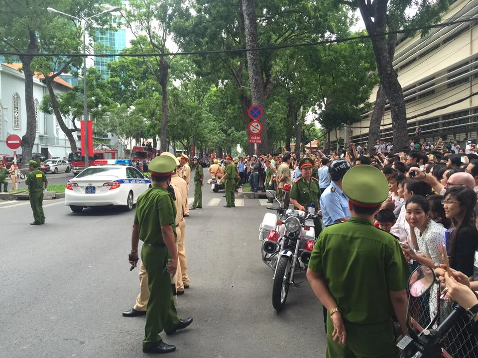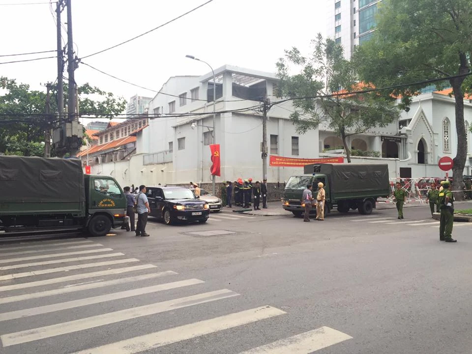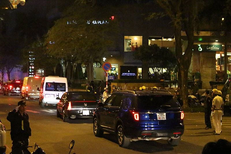 Cùng lúc, từ khoảng 11 giờ trưa, lực lượng CSGT, CS113 đã được tăng cường chốt chặn các ngã tư Lê Duẩn - Hai Bà Trưng, Nguyễn Du - Hai Bà Trưng... để bảo vệ trật tự xung quanh khách sạn.