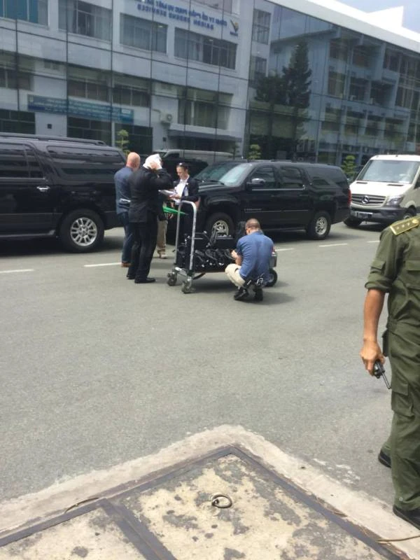 Liền sau đó, tổng thống vẫy chào thân thiện và nhanh chóng bước xuống máy bay. Với tác phong nhanh nhẹn thường thấy, ông được các mật vụ bảo vệ, hộ tống lên xe chuyên dụng, rời khỏi đường băng sân bay.