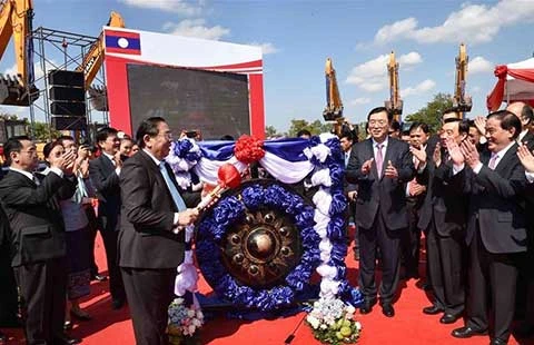 Lễ khởi công xây dựng đường sắt Trung Quốc - Lào tại Vientiane ngày 2-12-2015. Ảnh: TTX