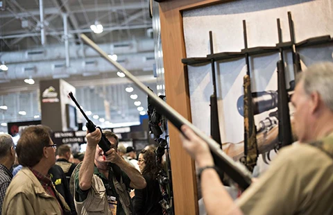 Khu vực triển lãm súng tại Hội nghị lần thứ 144 của NRA tại Nashville tháng 4-2015. Ảnh: BLOOMBERG