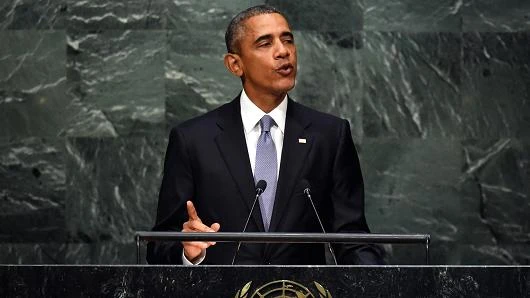 Ông Obama là một trong những diễn giả đầu tiên tại lễ khai mạc cuộc tranh luận chung cho phiên thứ 70 của Đại hội đồng Liên Hiệp Quốc. Bài diễn thuyết của ông được xếp sau bài của Chủ tịch Trung Quốc Tập Cận Bình, Putin và Tổng thống Pháp Francois Hollande.