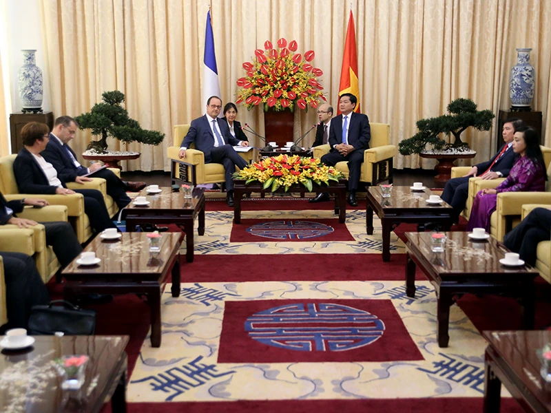 Sau buổi nói chuyện ở Viện Tim, Tổng thống Pháp đã đến dinh Độc Lập để hội kiến cùng Bí thư Thành ủy Đinh La Thăng.