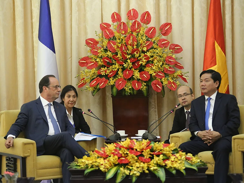 Trước đó, Tổng thống Cộng hòa Pháp François Hollande đã đến thủ đô Hà Nội để bắt đầu chuyến thăm và làm việc kéo dài từ ngày 5 đến 7-9.