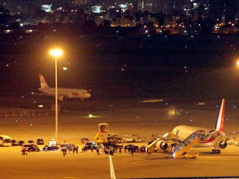 Các tuyến đường ra vào sân bay đã được phong tỏa tối 7-9 để đảm bảo cho đoàn xe hộ tống Tổng thống Pháp di chuyển an toàn.