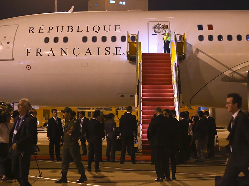 Chiều tối 6-9, chuyên cơ của Tổng thống Pháp đã đáp xuống sân bay Tân Sơn Nhất.