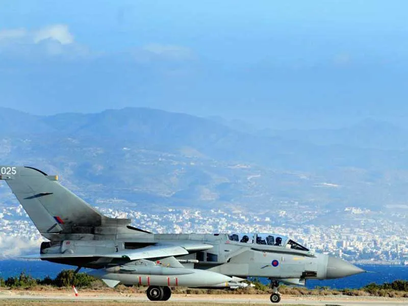 Máy bay chiến đấu RAF ở căn cứ Tornado của Anh ở đảo quốc Cyprus được đặt trong tình trạng sẵn sàng làm nhiệm vụ tại Syria. Ảnh: PA