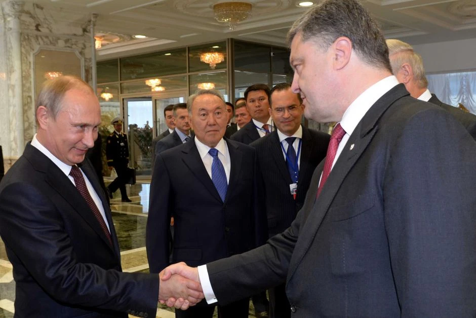 Tổng thống Nga V. Putin (trái) và tổng thổng Ukraine Petro Poroshenko vừa có cuộc điện đàm song phương về những vấn đề khẩn cấp vào ngày 26-11