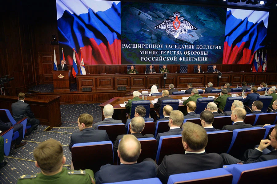 Tổng thống Nga trong cuộc họp với các quan chức quốc phòng hôm 11-12. (Ảnh: Sputnik)