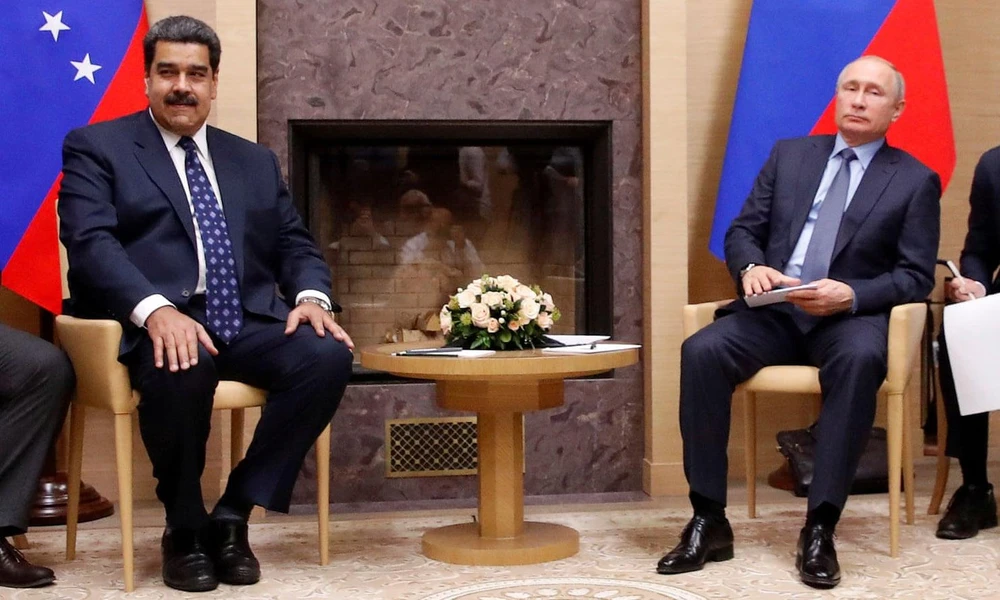 Tổng thống Nga Vladimir Putin và người đồng cấp Venezuela Nicolas Maduro (bên trái). Ảnh: REUTERS