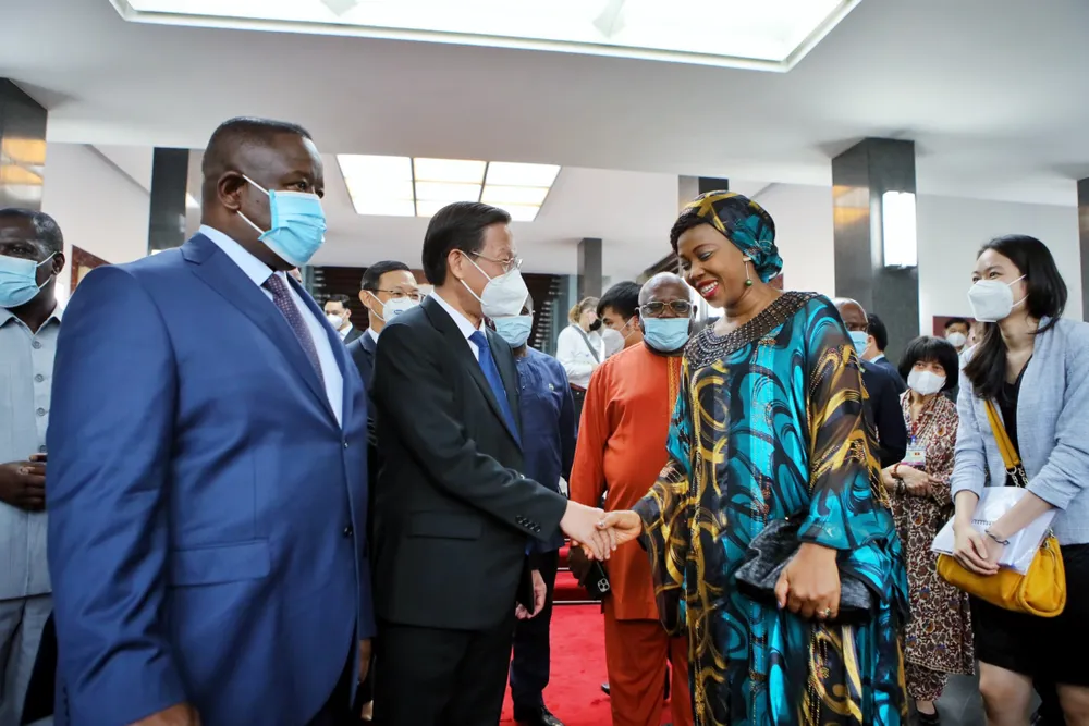 Chủ tịch UBND TP.HCM Phan Văn Mãi thăm hỏi phu nhânTổng thống Sierra Leone. Ảnh: NGUYỆT NHI
