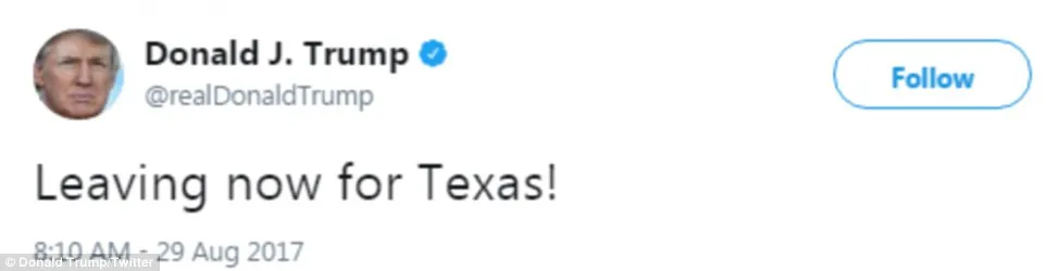 Dòng tweet sáng 29-8 (giờ địa phương) của Tổng thống Trump trước khi cùng vợ đến thăm vùng tâm bão. Ảnh: Tweeter