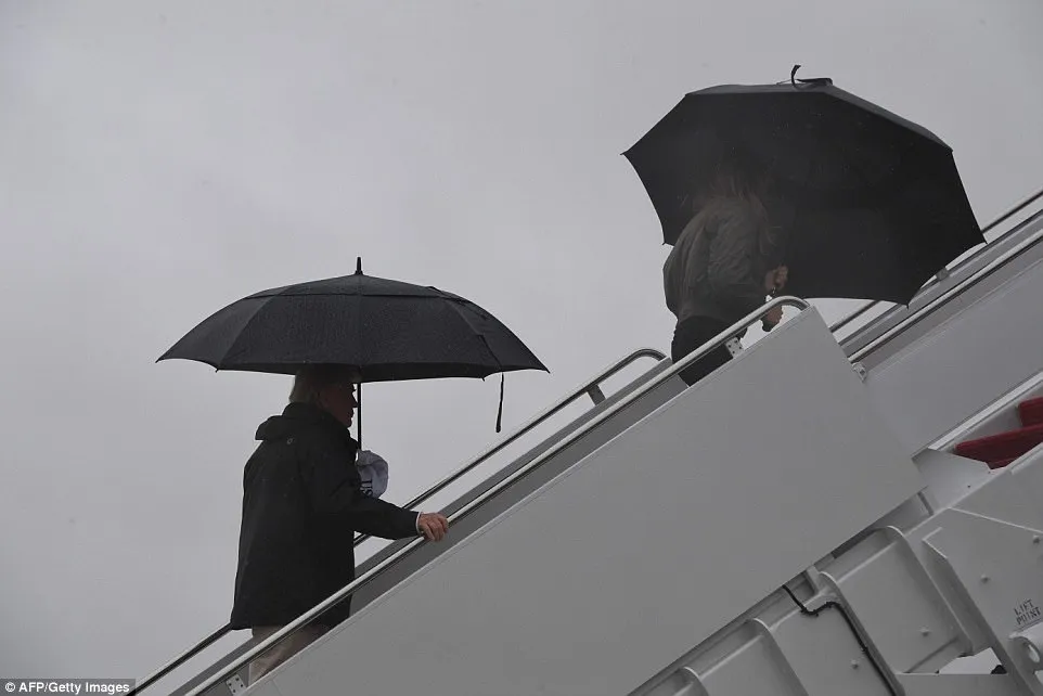 Vợ chồng Tổng thống Trump lên máy bay đến Corpus Christi, Texas. Ảnh: AFP