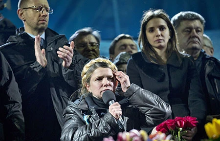| Đêm 22-2, bà Yulia Tymoshenko đã xuất hiện tại quảng trường Độc Lập trong tiếng hò reo chào đón của 50.000 người biểu tình. Bà ngồi trên xe lăn, dàn dụa nước mắt kêu gọi những người biểu tình tiếp tục bám trụ đến khi nào đạt được mục đích. Thứ trưởng Nội vụ Arsen Avako cho biết ngày 22-2, nguyên Viện trưởng Viện Công tố Viktor Pshonka và Bộ trưởng Bộ Thu nhập và Chi tiêu Oleksandr Klymenko định lấy máy bay ra đi từ sân bay Donetsk nhưng có tiếng súng nổ, sau đó hai người này đã rời sân bay. |
