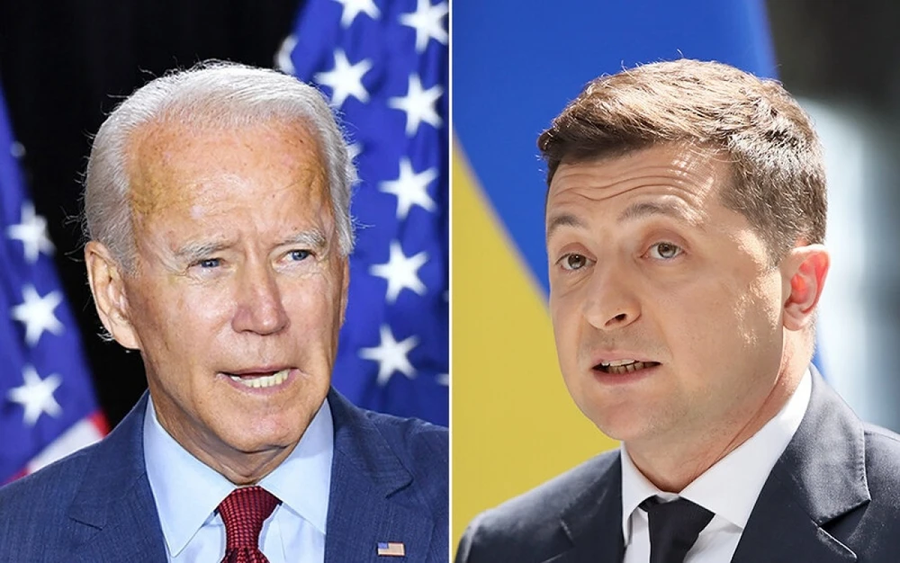 Tổng thống Mỹ Joe Biden (trái) và người đồng cấp Ukraine Volodymyr Zelensky. Ảnh: UKRGATE