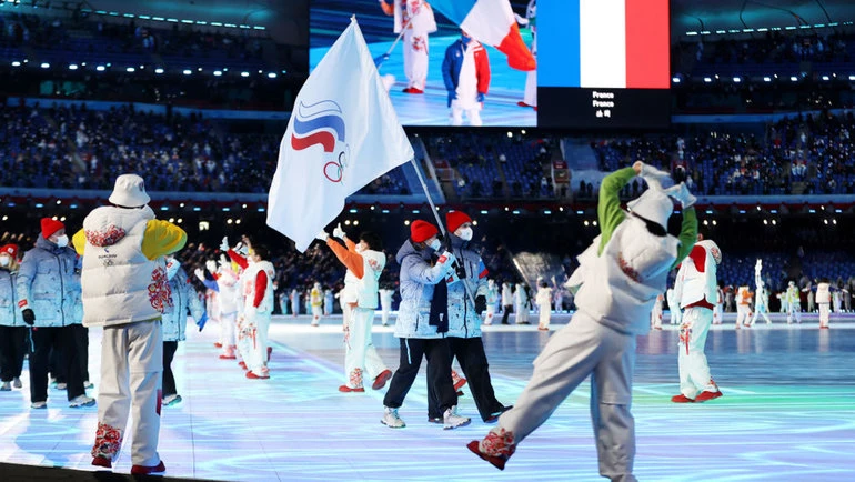 Đoàn thể thao Nga thi đấu tại Olympic mùa đông 2022 dưới ngọn cờ Olympic. Ảnh: S.E