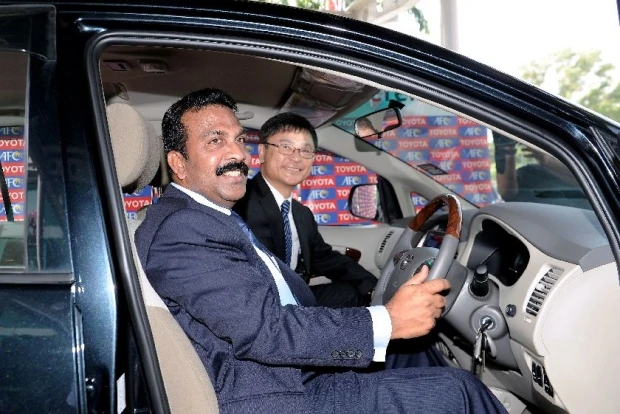 Ông Soosay (lái) chở vị Tổng giám đốc bán hàng của hãng Toyota- ông Tomozoe
