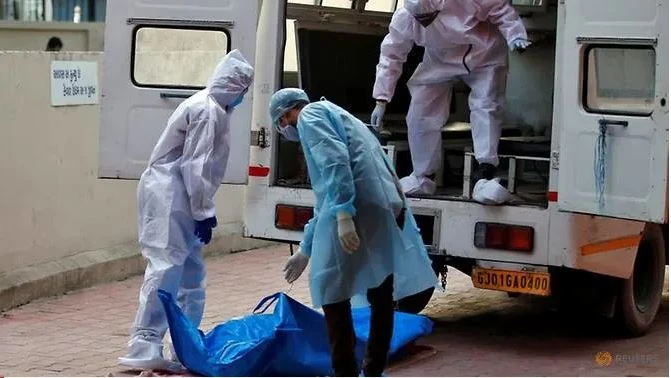 Các nhân viên y tế Ấn Độ đang đưa thi thể một người chết vì COVID-19 đến nhà xác. Ảnh: REUTERS