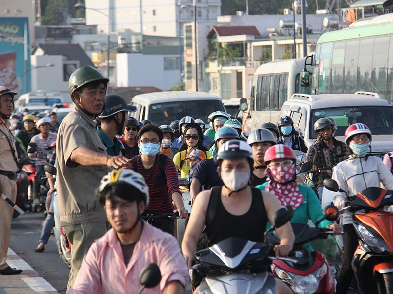 Vụ việc khiến tuyến đường qua cầu bị ùn ứ nghiêm trọng.