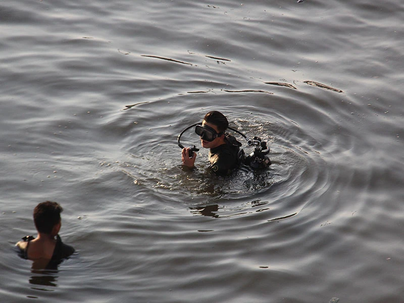 Người nhái lặn sông tìm kiếm thi thể nạn nhân.