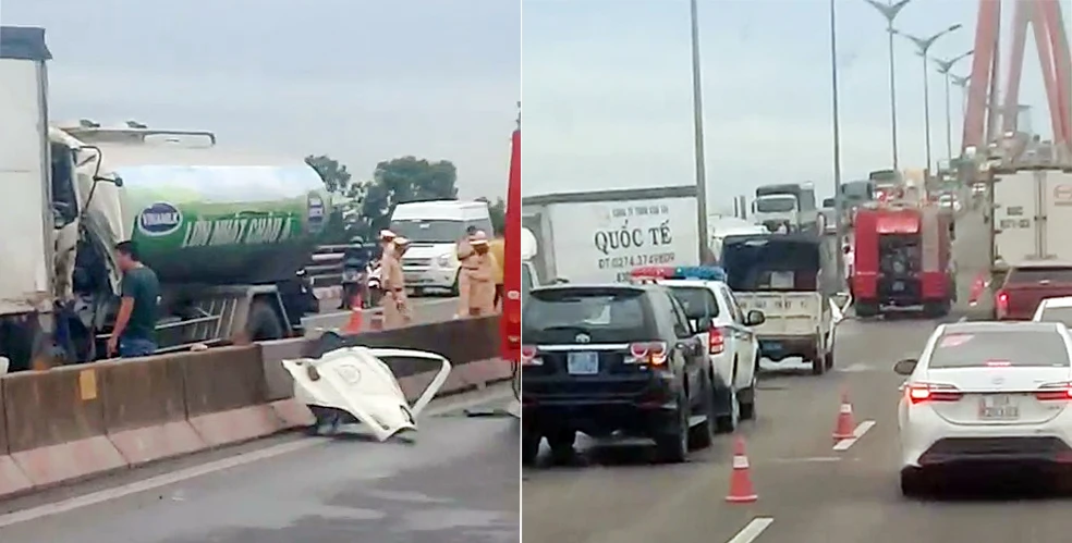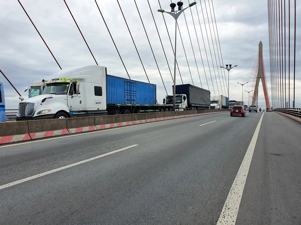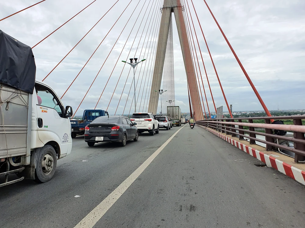 Vụ tai nạn làm kẹt một đoạn dài trên cầu Cần Thơ.