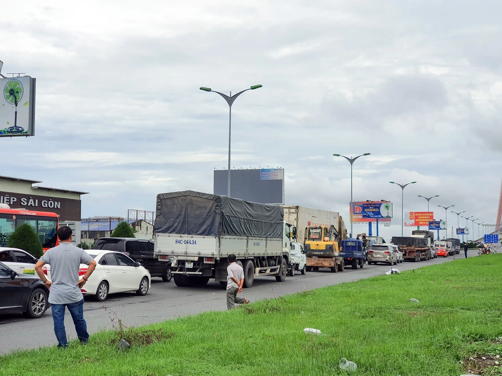 Tình trạng kẹt xe kéo dài đến phía bờ Vĩnh Long.
