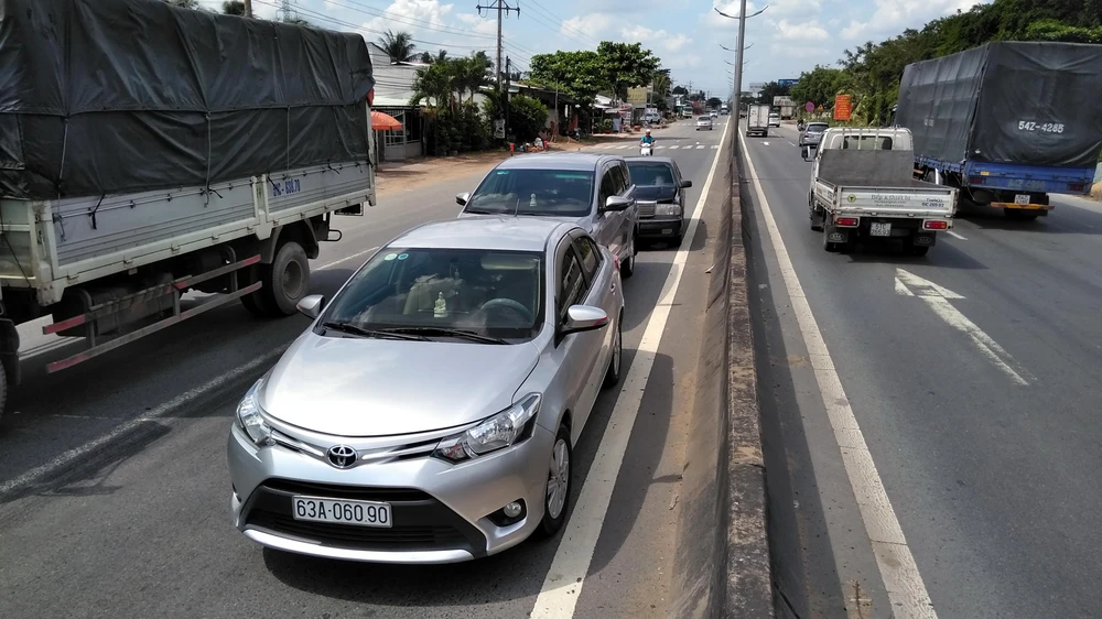Cụ thể, khoảng 13 giờ chiều, ô tô 5 chỗ 63A-060.90 chạy trên đường dẫn cao tốc TP.HCM – Trung Lương, hướng đi từ vòng xoay cao tốc ra ngã tư Đồng Tâm. Xe này khi qua xã Tam Hiệp thì tài xế phát hiện có ô tô khác đang quay đầu theo điểm mở dải phân cách trên đường nên giảm tốc độ để né tránh.