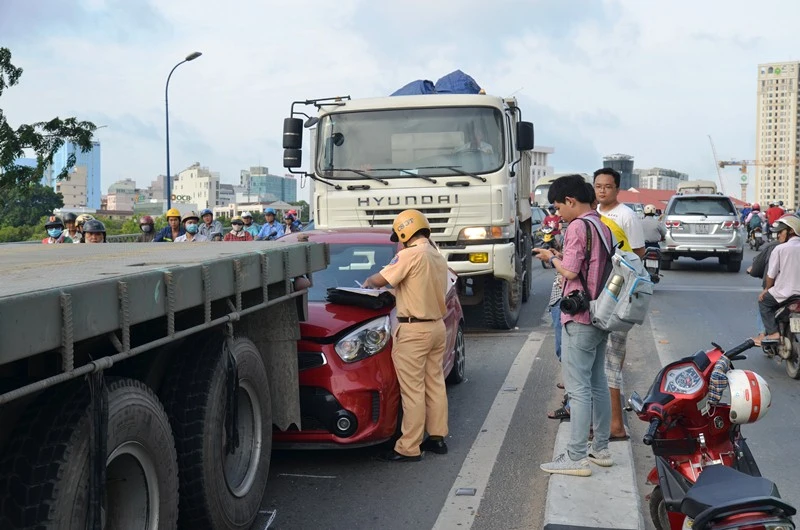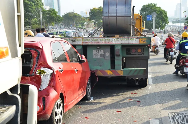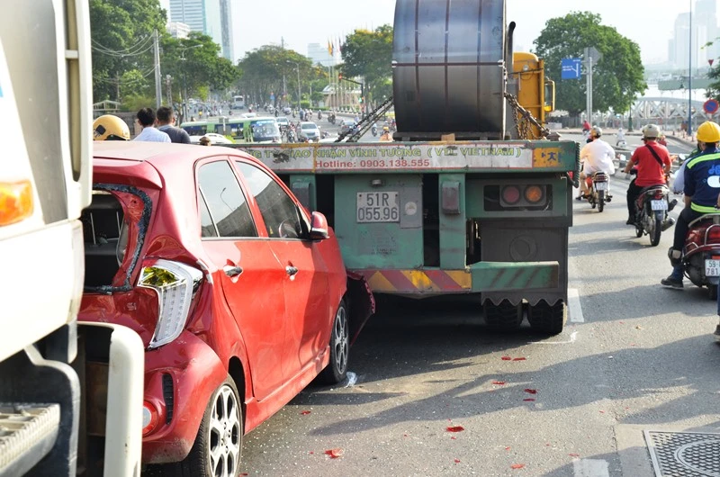 Vụ va chạm liên hoàn xảy ra sáng sớm 11-6 trên cầu Khánh Hội.