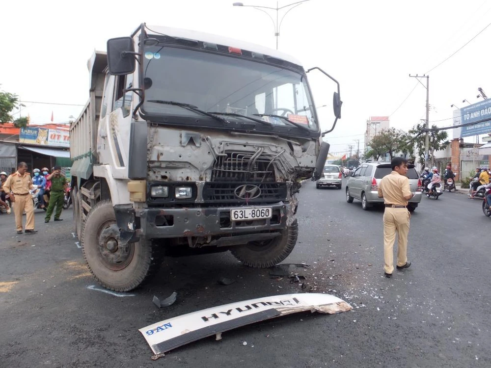 Thông tin ban đầu cho biết, khoảng 14 giờ chiều 7-5, xe ben 63L-8060 lưu thông trên QL60 hướng từ vòng xoay Trung Lương vào nội ô TP Mỹ Tho. Khi đến điểm mở dải phân cách thuộc địa bàn phường 10, TP Mỹ Tho thì giảm tốc độ để quay đầu đã bất ngờ bị xe tải 84C-032.40 lưu thông phía sau húc vào phần sau.