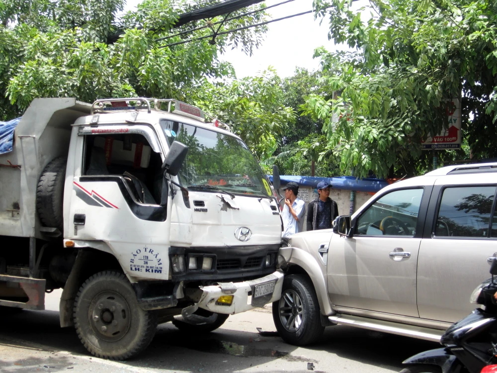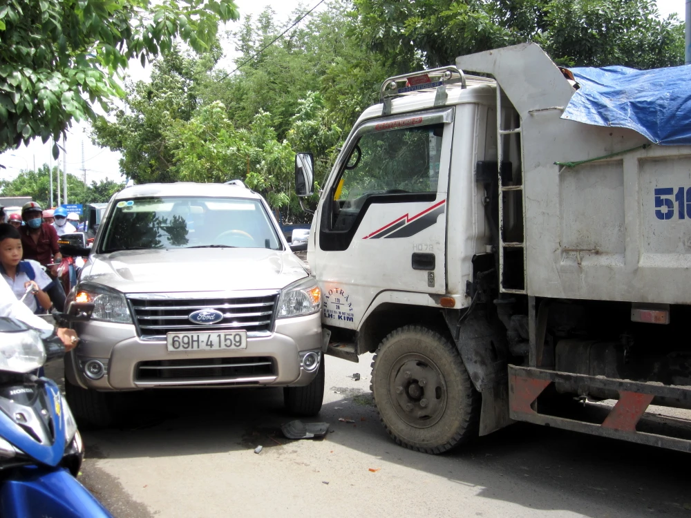 Xe ben và xe ô tô 7 chỗ đụng nhau