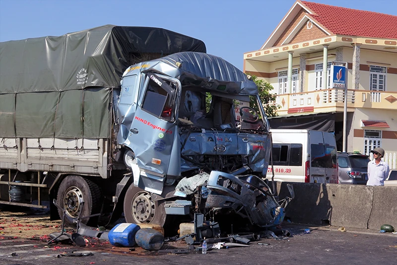Cú tông mạnh làm đầu xe tải 29C-899.10 bị bẹp dúm, vỡ nát. Tài xế Minh chết tại chỗ, kẹt trong cabin. Phụ xe Nguyễn Phan Tùng (26 tuổi, ngụ huyện Đan Phượng) bị thương nặng, được đưa đi cấp cứu tại BV Đa khoa Phú Yên.
