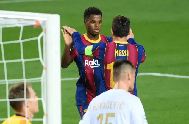 Fati được xem là "người kế nhiệm" Messi ở Barcelona. ẢNH: AFP
