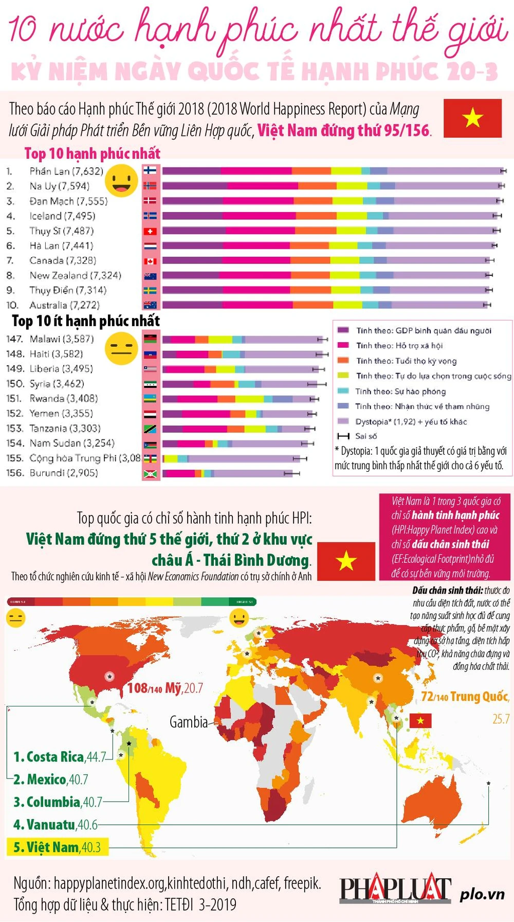Top 10 nước hạnh phúc nhất thế giới và vị trí của Việt Nam