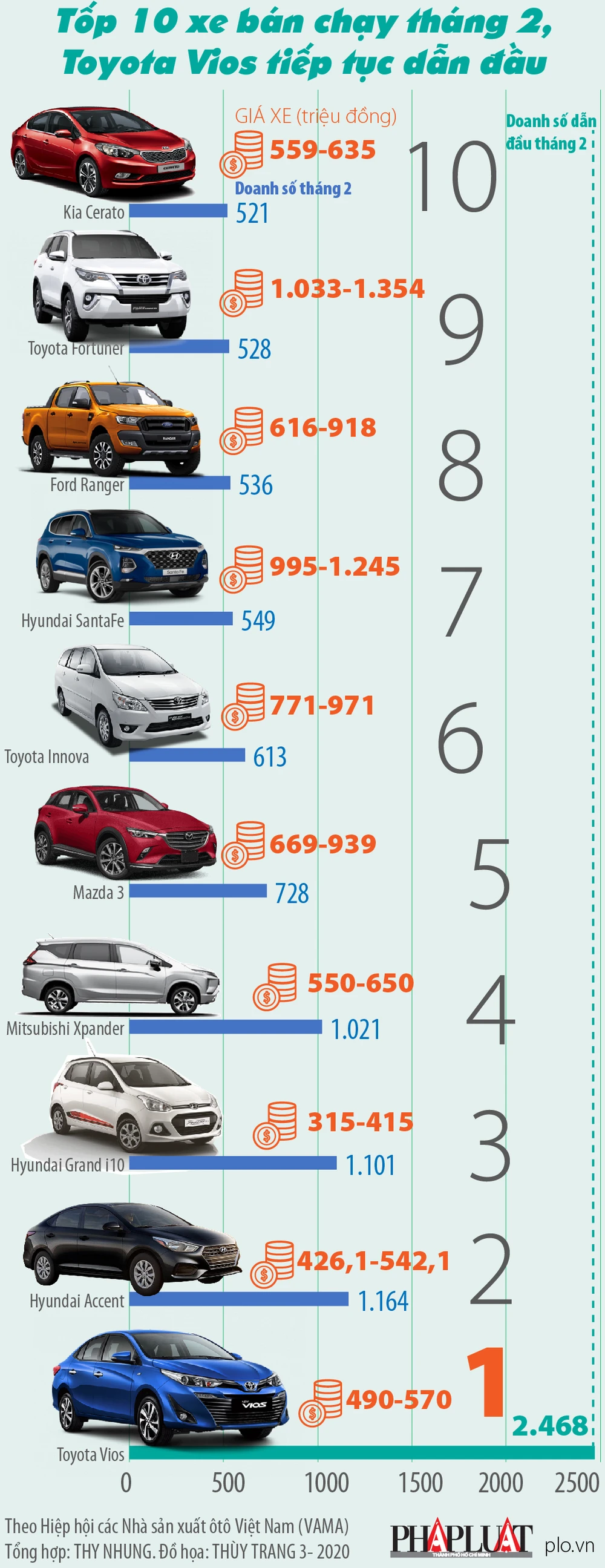 Theo thống kê từ Hiệp hội các Nhà sản xuất ô tô Việt Nam (VAMA), doanh số bán hàng của các hãng xe thành viên đã đạt 17.616 chiếc trong tháng 2-2020, tăng 11% so với tháng 1-2020 và cũng tăng 41% so với cùng kỳ năm ngoái.