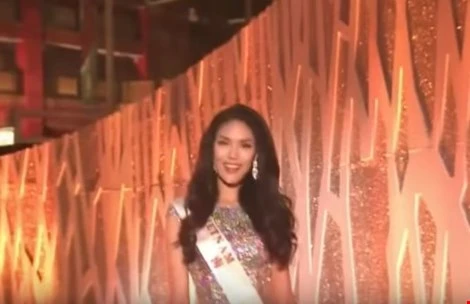 Lan Khuê xuất hiện trong đêm chung kết cùng người đẹp xứ Wales.