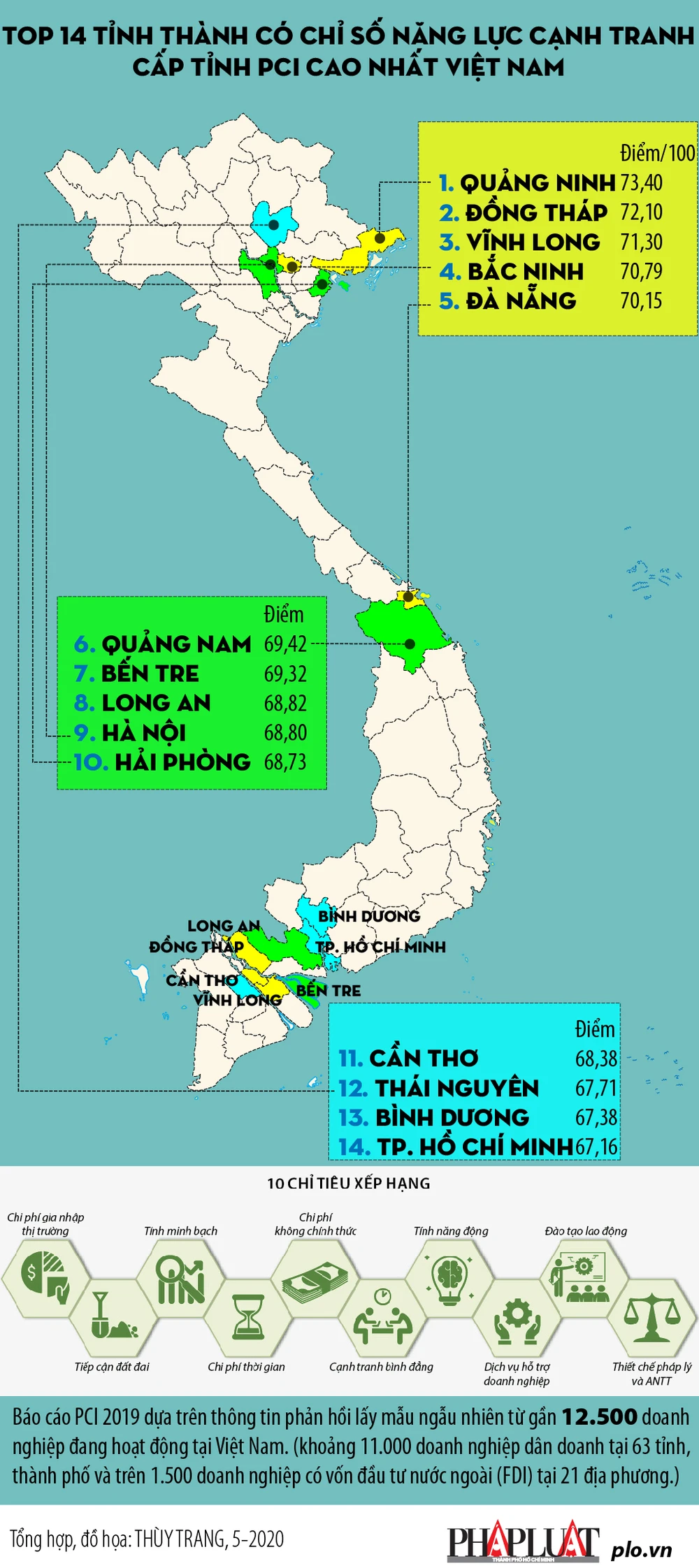 (PLO)- Phòng Thương mại và Công nghiệp Việt Nam (VCCI) vừa phối hợp với Cơ quan Phát triển Quốc tế Hoa Kỳ công bố tốp 14 tỉnh, thành có chỉ số năng lực cạnh tranh cấp tỉnh (PCI) cao nhất năm 2019, TP.HCM đứng thứ 14.