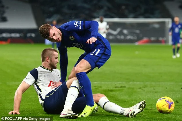 Tình huống Dier phạm lỗi với Werner trong vòng cấm. ẢNH: GETTY