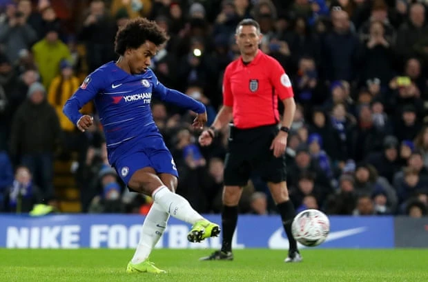 Willian thực hiện thành công mang về lợi thế dẫn bàn cho Chelsea ở phút 26.