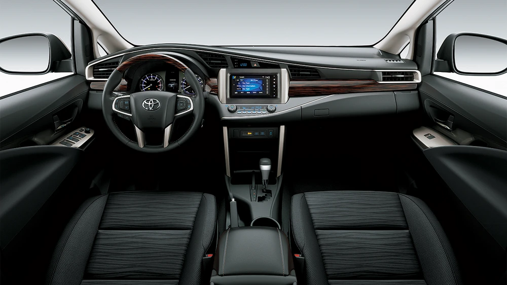 Phía bên trong nội thất, Innova 2.0 Venturer mang lại cảm giác sang trọng hơn khi tập trung vào các chi tiết nhỏ tinh tế như vô lăng 3 chấu được bọc da và ốp gỗ một cách tỉ mỉ, đi kèm với họa tiết mạ bạc lịch lãm. Không gian khoang lái cũng trở nên ấm áp hơn khi bảng táp lô tập trung sử dụng chất liệu gỗ cao cấp, kết hợp với cần số bọc da mạ bạc sang trọng.